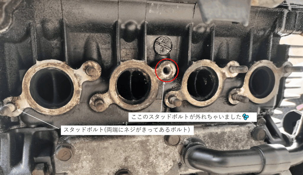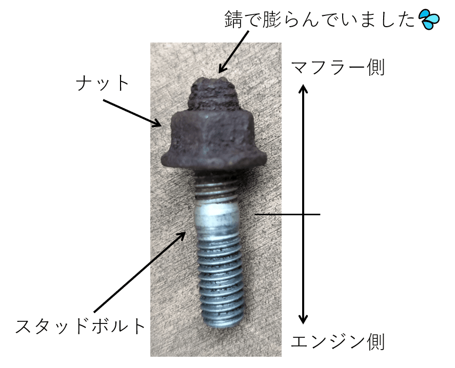マフラーを締結しているナットを外す際、スタッドボルトが錆びておりナットが外れないためスタッドボルトが取れてしまいました💦